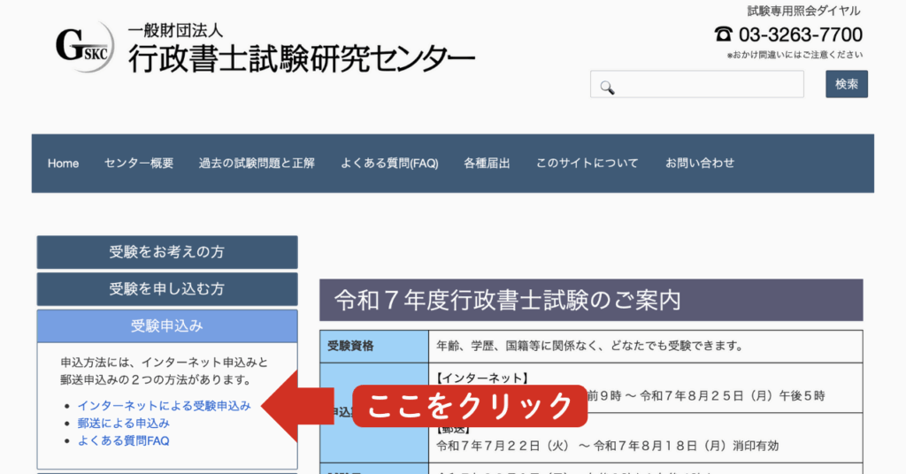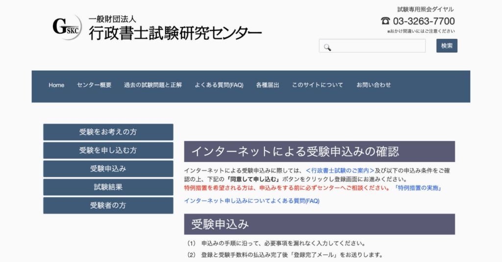 STEP1. 行政書士試験研究センターのページを開く