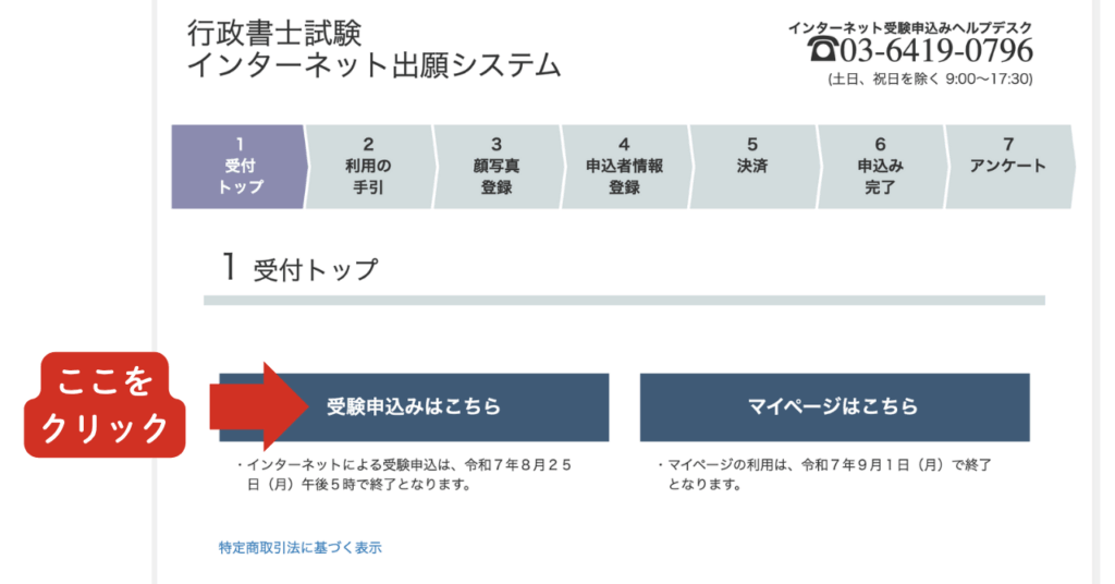 STEP5. 受付トップから「受験申込みはこちら」を選択