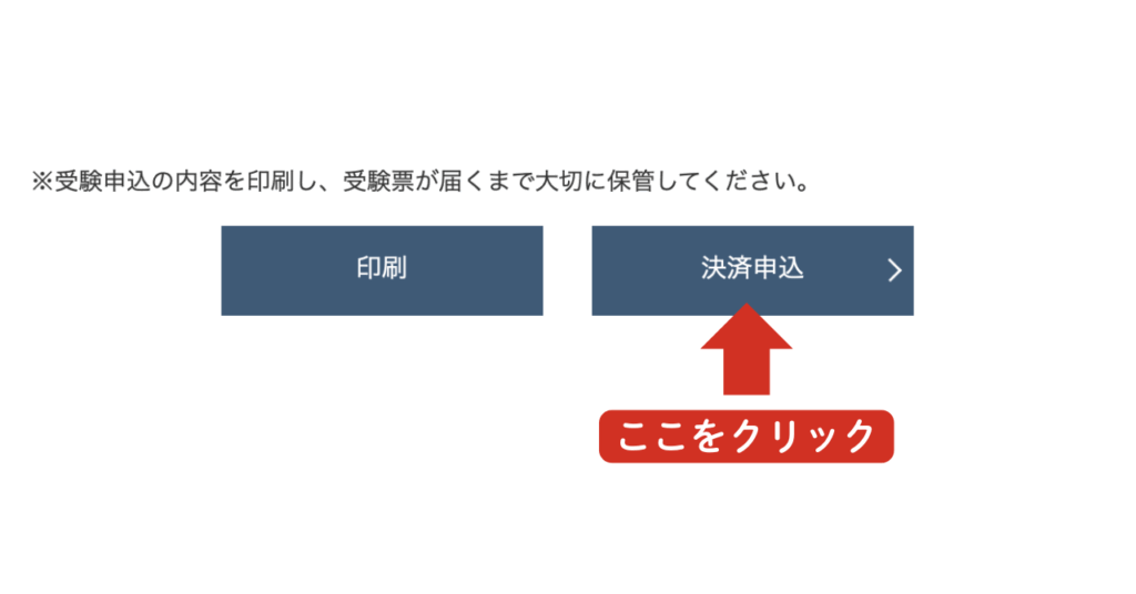 次に、右側のボタンをクリックし、「決済申込」を選択してください(印刷は必要に応じて行ってください)。